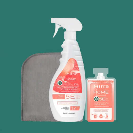 Комплект для безупречной чистоты стекол и зеркал автомобиля: микрофибровая САЛФЕТКА ДЛЯ УБОРКИ "СТЕКЛА И ЗЕРКАЛА" размером 35*40 см (арт. 9910388) и экологически безопасный ЭКОСПРЕЙ ДЛЯ МЫТЬЯ СТЕКОЛ объемом 500 мл с капсулой концентрированного средства 50 мл.